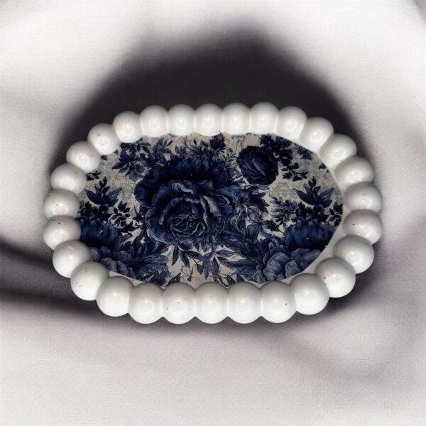 Douceur Botanique est une élégante assiette en jasmonite, délicatement costumisée avec un papier floral qui lui apporte un charme naturel et raffiné.