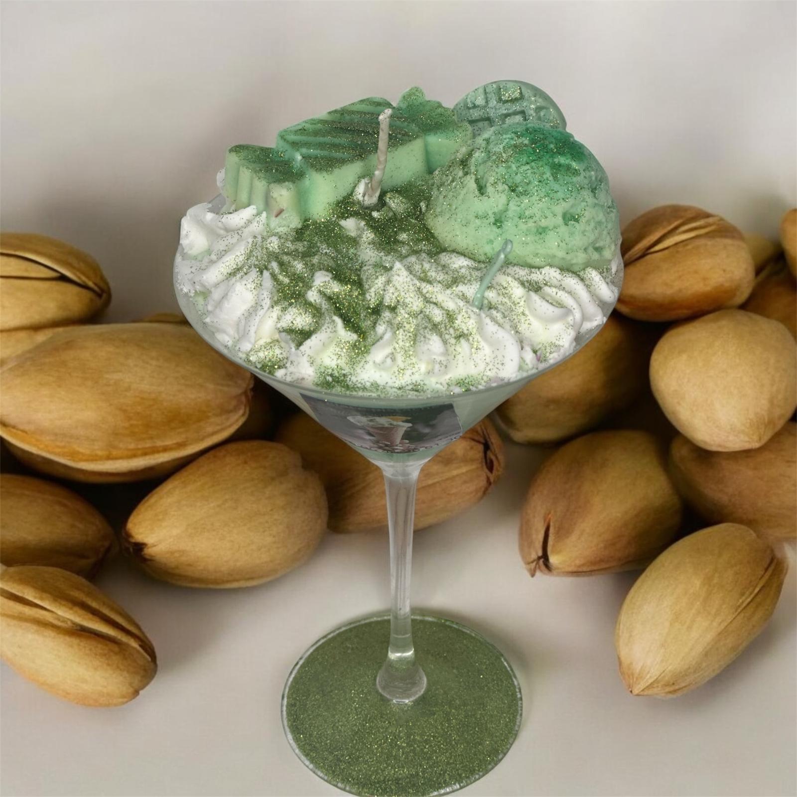 🍨 Éclat de Pistache – Bougie Gourmande en Coupe Glacée