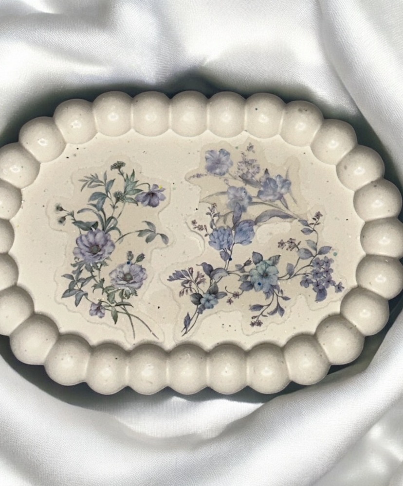 Idéale pour y déposer un petit gâteau, une tasse de café, ou simplement en vide-poche décoratif, elle s’invite dans ton quotidien avec charme et simplicité.